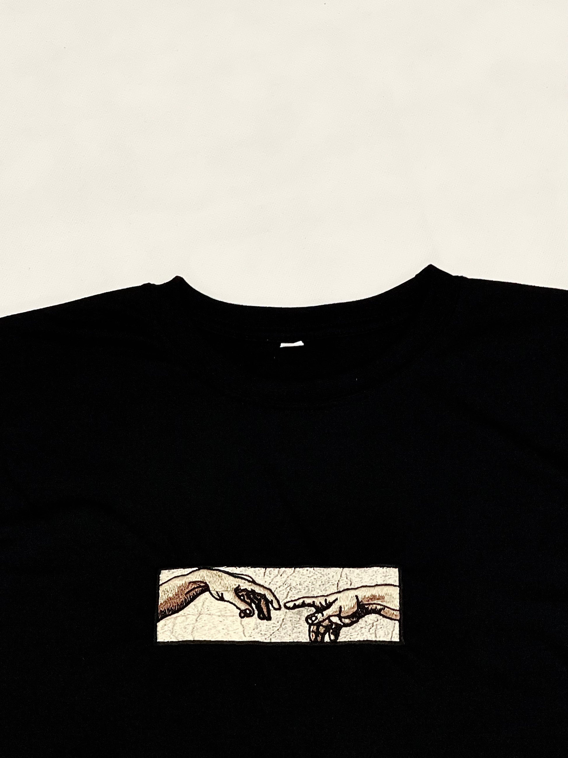 Bold artistry meets dark intensity in this 2-pack of Hands of Adam and Berserk oversized embroidered tees – premium quality, striking style.