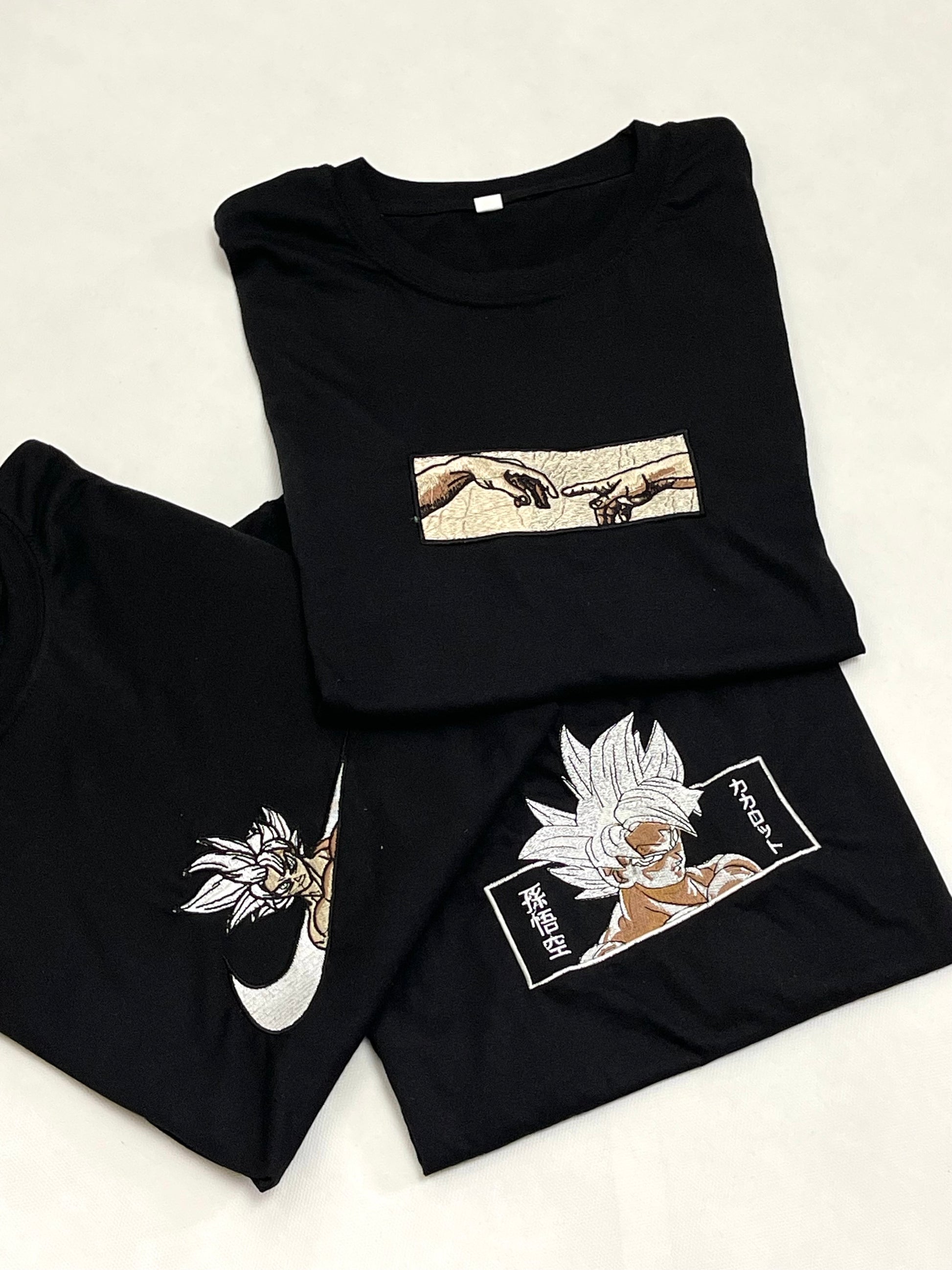 Fuse timeless art with anime energy in this 3-pack of Creation of Adam, Goku, and Goku x Nike oversized embroidered tees – crafted for bold expression and premium streetwear appeal.