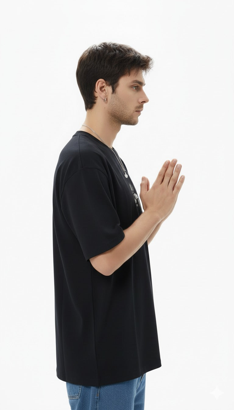 Defy the divine with our Fall of Phaeton Oversized Tee, showcasing a dramatic embroidery masterpiece of over 40,000 stitches—capturing the mythic downfall in unmatched depth and detail. Crafted from a 190 GSM cotton-polyester blend, it delivers heavyweight comfort and bold streetwear energy.
